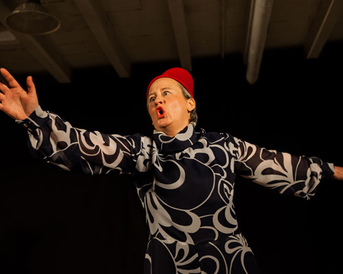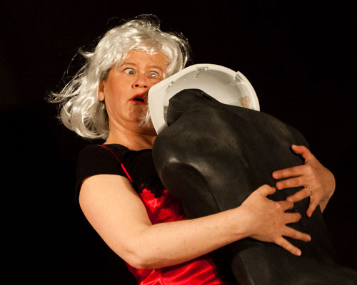«Pour ce spectacle, j’ai opté pour une mise en scène simple avec des objets quotidiens qui créent des images fortes mais absurdes, ainsi que sur un texte précis qui met en valeur les contradictions du personnage. J’ai misé sur le jeu, que je voulais clownesque, afin que les spectateurs rient de la folie du personnage plutôt que de la trouver pathétique. J’ai ciselé le jeu tout en le laissant libre afin de baser le spectacle sur une performance d’actrice.»