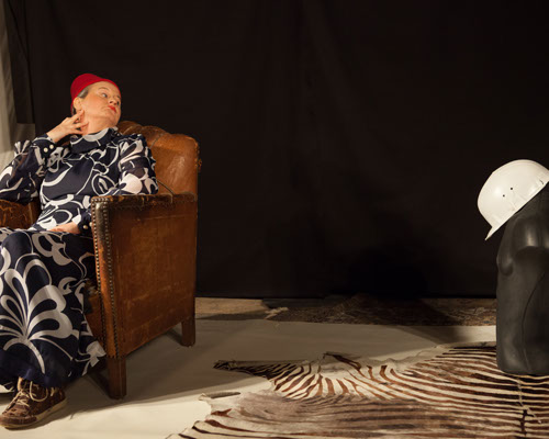 «Pour ce spectacle, j’ai opté pour une mise en scène simple avec des objets quotidiens qui créent des images fortes mais absurdes, ainsi que sur un texte précis qui met en valeur les contradictions du personnage. J’ai misé sur le jeu, que je voulais clownesque, afin que les spectateurs rient de la folie du personnage plutôt que de la trouver pathétique. J’ai ciselé le jeu tout en le laissant libre afin de baser le spectacle sur une performance d’actrice.»